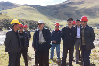 9月18~22日期間,唐增科董事長在集團公司辦公室、計劃投資部人員及玉樹、玉能兩公司負責同志陪同下,分別前往拉貢水電廠、稱多縣8MW “金太陽”發電站、稱多縣供電所、查隆通水電廠、查日扣水電站和當卡水電站施工現場、2MW “金太陽”水光互補微網發電站、禪古水電廠以及玉樹州燃油發電機廠,全面調查了解項目建設、電站運行、安全管理及黨的建設等情況。在各發電廠,唐董事長走上大壩,進入廠房,駐足察看機組運行實時狀況,與運行人員交流,向現場值班人員詢問用電負荷、機組出力及設備維護等情況。在各在建項目施工現場,唐董事長仔細了解項目前期工作、投資計劃和工期安排,并和施工單位管理人員現場交流項目施工計劃和人員、設備配置等情況,他要求參建單位抓緊抓實各項工作,科學謀劃、合理安排、精心組織,力爭完成年內施工任務。在稱多供電所,唐董事長和職工座談交流,詳細了解電力供應、職工收入和工作生活等情況。每到一處,唐董事長向兩公司干部職工以及廣大建設者致以中秋、國慶佳節的問候和祝福,并贈送了慰問金。他勉勵大家立足本職崗位努力工作,為玉樹災后重建和建設新玉樹做出更新更大的貢獻。