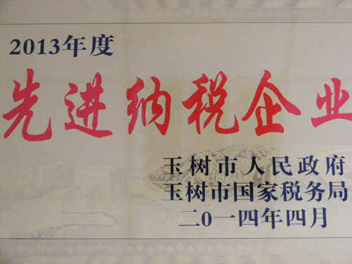 玉樹電力公司榮獲2013年度“先進納稅企業”稱號