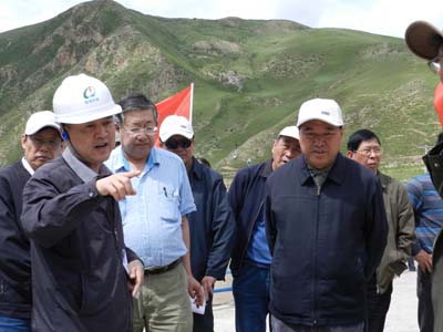 (玉電) 7月的玉樹,正值災(zāi)后重建如火如荼進行之際,水利部副部長胡四一、民盟中央副主席索麗生、水利部總工程師江洪、水利部長江委主任蔡其華等一行53人組成的黃河河源區(qū)保護專題調(diào)研團,蒞臨青海水電集團玉樹禪古電站水庫調(diào)研。