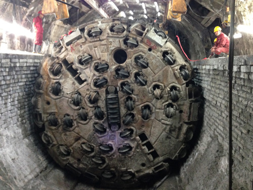 830,引大濟湟調水總干渠引大隧洞出口段TBM完成設備升級改造工作,開始進行整機聯合調試工作,即將進入試運行掘進階段。當天下午,省水利廳副廳長張偉、省引大局局長王海平、青海水電集團董事長唐增科和總經理王海青等同志,來到隧洞內部施工掌子面現場檢查指導工作,慰問廣大中外建設者,并就乘勢而上,再接再厲,加快做好后續工作明確了具體要求,勉勵參建各方為力爭實現2014年底調水總干渠引水隧洞全線貫通總目標作出不懈努力。