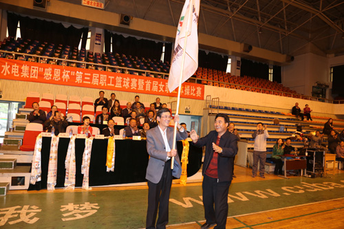 唐增科董事長在致辭時指出,舉辦“感恩杯”第三屆職工籃球賽和首屆女職工體操比賽,旨在慶祝新中國65歲華誕,感恩省委省政府和社會各界對玉樹電力、對青海水電集團改革發展的親切關懷,慶祝玉樹災后水電恢復重建和電力保障工作取得顯著成績,進一步凝聚全體干部職工的智慧和力量,為企業全面深化改革,實現持續健康發展而努力奮斗。同時,舉辦這次比賽,也是豐富職工群眾精神文化生活、提升職工隊伍整體素質的現實需要,是激發干部職工工作熱情、增進企業內部交流協作的有效手段,對于增強凝聚力、向心力,培育優秀團隊文化和企業軟實力具有十分重要的意義。