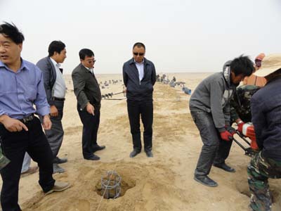當(dāng)天早晨,王總經(jīng)理在集團(tuán)副總經(jīng)理、格爾木水電有限公司總經(jīng)理于宗甲陪同下,首先來到正在開展建前準(zhǔn)備工作的格爾木市東出口20兆瓦光伏發(fā)電站工地,察看了選址條件和水、電、路設(shè)施,詳細(xì)詢問了前期手續(xù)申報和施工準(zhǔn)備情況,并參觀了周圍在建同類項(xiàng)目施工現(xiàn)場和匯流送出工程。他要求集團(tuán)新能源辦繼續(xù)全力以赴推動工作,格水電公司積極予以支持配合,加快完成項(xiàng)目報審程序,及早進(jìn)入工程建設(shè)階段,確保其在年底前投產(chǎn)發(fā)電,并力爭進(jìn)一步擴(kuò)展規(guī)模,真正用足用好國家扶持太陽能發(fā)電產(chǎn)業(yè)的各項(xiàng)政策。